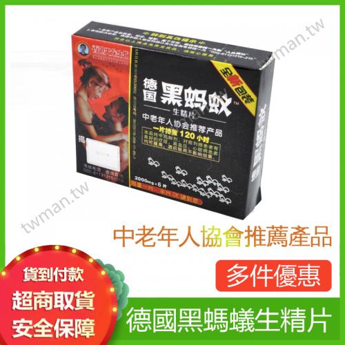德國黑螞蟻生精片是香港天龍生物科技(國際)集團公司,經過多年市場調研而精心研製的一款男性補腎產品,2003年經臨床試驗成功後推出市場,成為了最佳犀利士、威而鋼替代產品,能促進陰莖快速勃起增硬增粗、能有效解決性愛短暫、提升勃起硬度、防止早洩、延長性愛時間;而且能在人體內留存120小時,本品的純中藥製劑不會產生任何副作用及依賴性;沒有臉紅、心跳加速、噁心頭痛等反應,而且不受心髒病、高血壓、糖尿病的影響,是一款適合大部分男性的一款保養產品!