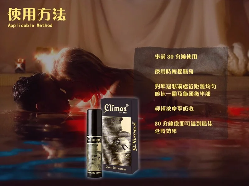 使用前请先摇匀,在亲密前15-30分钟,距离皮肤约10-15厘米均匀喷洒1-2次于敏感部位,轻轻按摩至吸收。建议首次使用时先少量测试,以找到最适合您的用量。本产品原装进口,配方温和,能有效延长亲密时间,提升持久力,让您享受更自信的体验。