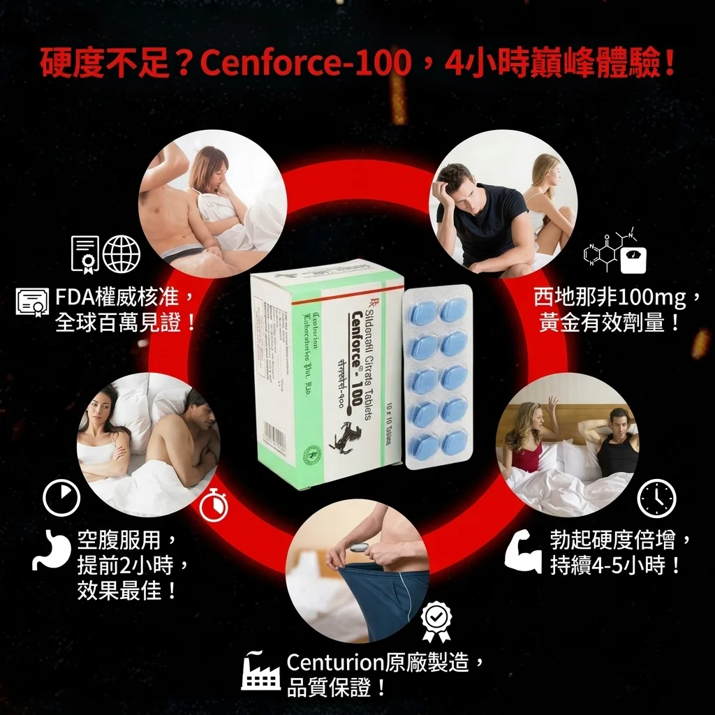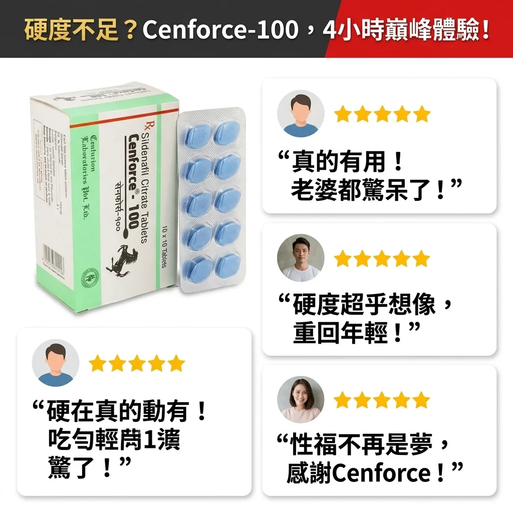 通常服用後30-60分鐘開始起效,效果可持續4-6小時。Cenforce 100mg 作為爆款ED治療產品,其高效配方能顯著改善勃起硬度,讓您享受更持久、更滿意的親密體驗,重拾自信。