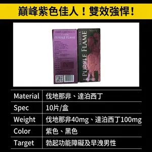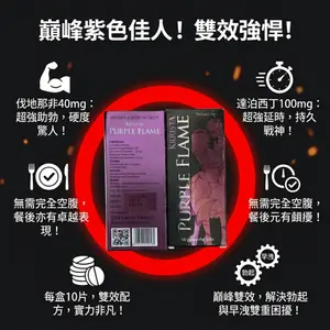 超级巅峰希爱力双效片 伐地那非40mg达泊西丁100mg 10粒盒装 紫色烈焰已累計銷售48件,是男士壮阳藥中的人氣商品。