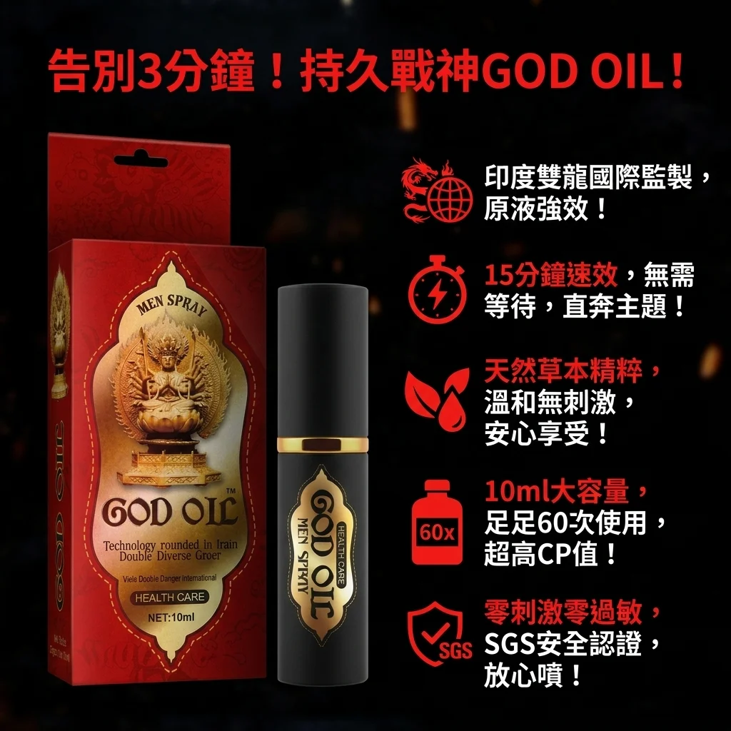 原裝進口印度神油GOD OIL二代新包装 原装进口男士外用延时喷剂 不麻木持久爆款是印度神油推出的外用持久液產品。印度神油